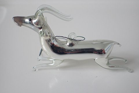 4 stk. glasjulepynt - dråbeformede med lilla, blå, rød og gul håndmaling. Russiske, 1950-erne. Højde: 11 cm. Diameter: 6 cm. Pris: 80 kr. stk.