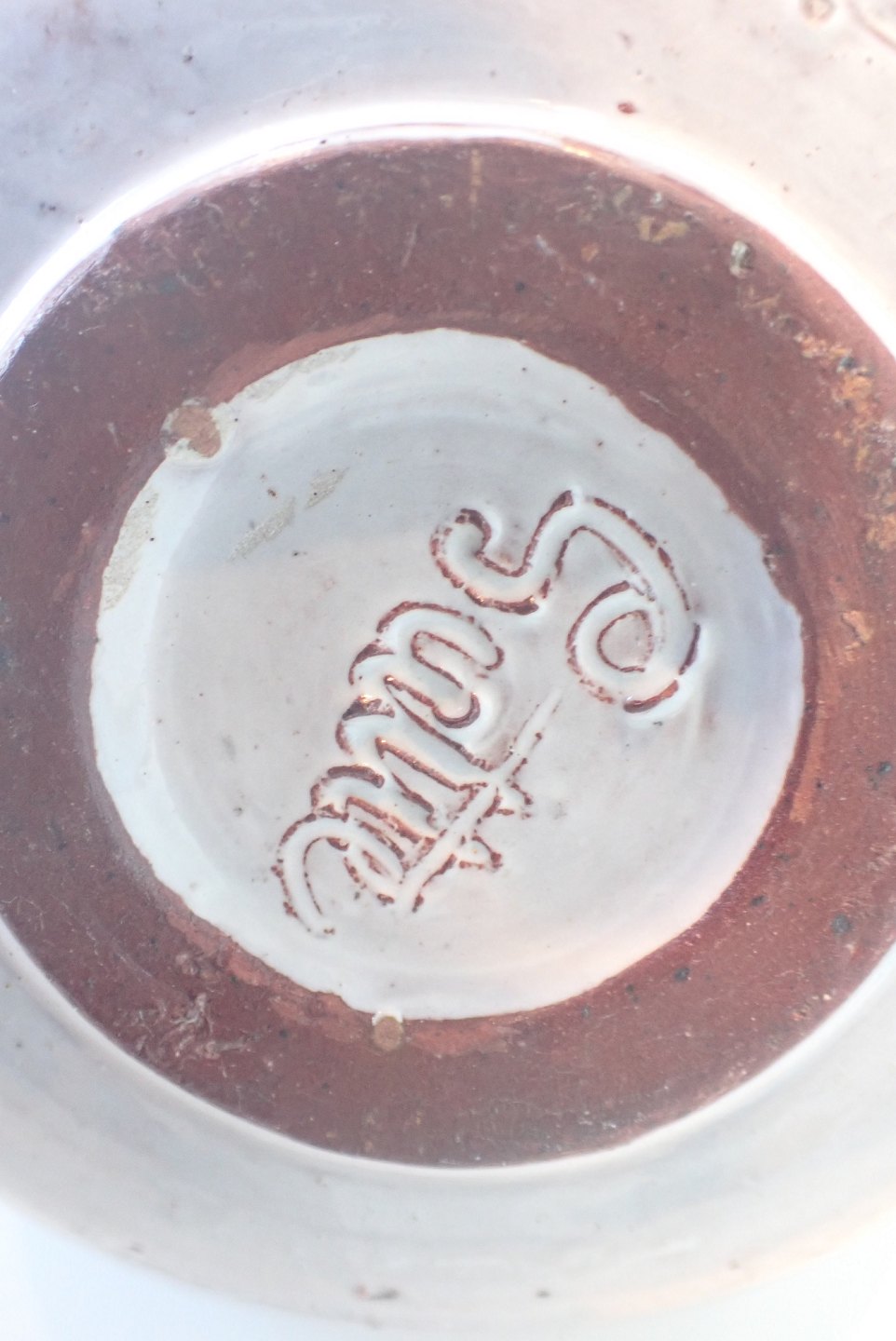 Gutte Eriksen (1918 - 2008) - spaltekande i hårdtbrændt ler med delvis, skulpturel glasering i lysegrå nuance. Ca. 1950. Højde: 14 cm. Bredeste bredde: 13,5 cm. I fin stand.
