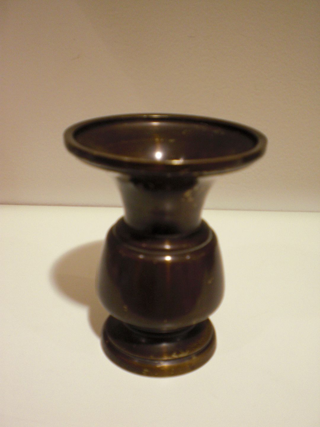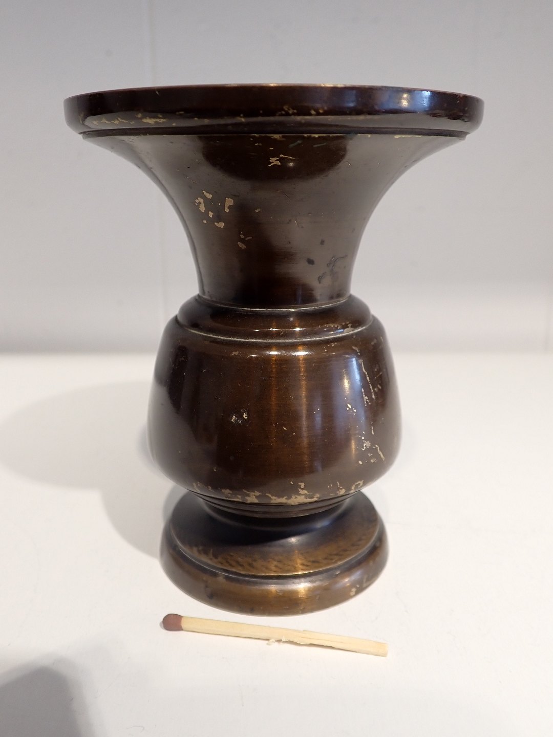 Lille kinesisk bronze vase til røgelsespinde - signeret. Ca. 1860. Højde: 10,5 cm. .