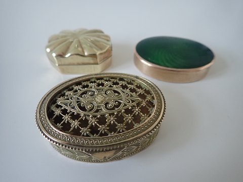 Tinterrin med håndtag med havskaller - knop på låg med perlekant. Nordtysk 1810 - 1820. Højde: 21 cm - diameter: 22 cm.