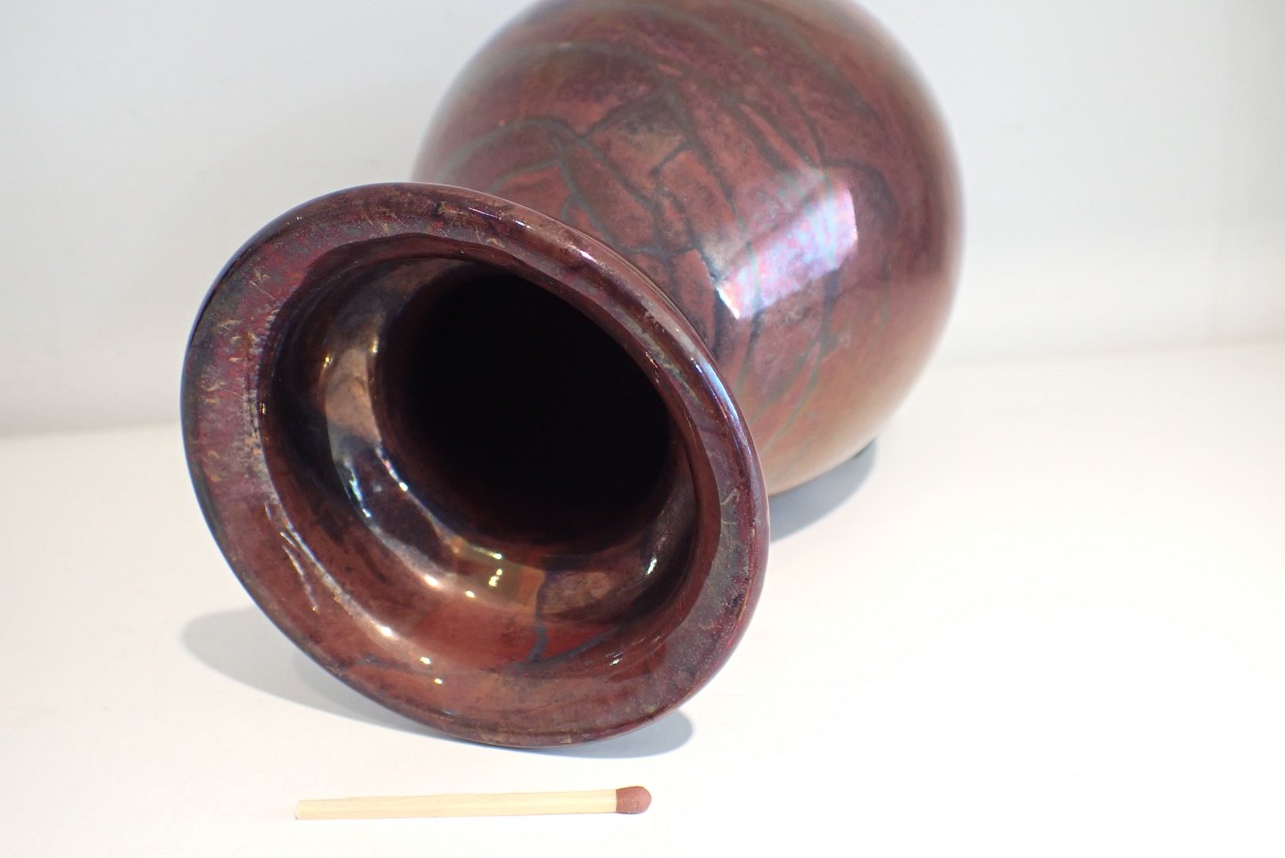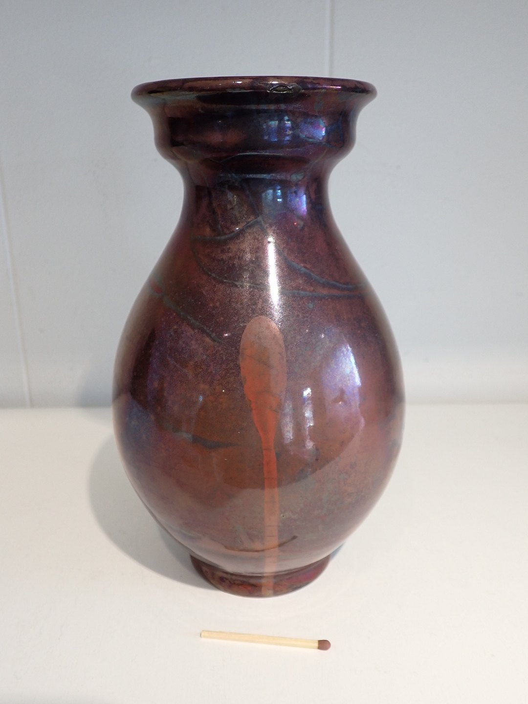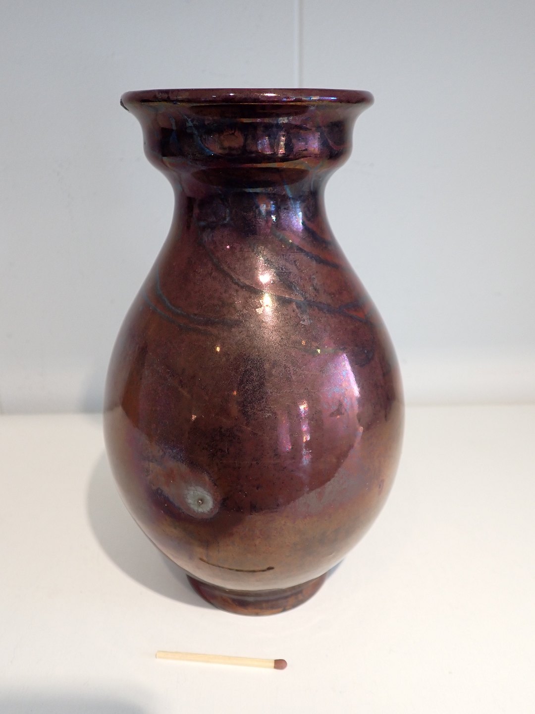 Kähler vase i baluster form med bordeaux luster glasur - sandsynligvis Karl Hansen Reistrup (1863 -1929) ca. 1900. Stemplet HAK. Højde: 19,5 cm. - bredeste diameter: 12 cm. Fin stand - en oprindelig fejl i glasuren.