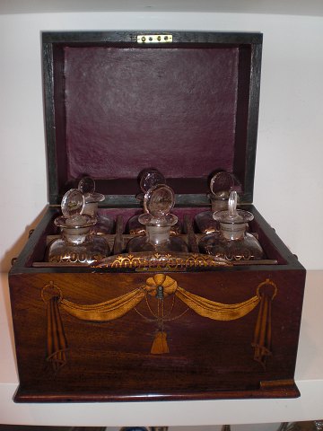 Ovalt dansk empirespegl i mahogni med indtarsia i lyst træ. Ca. 1820. Originalt facetslebent spejlglas med alderspæg. Højde: 64 cm - bredde: 56 cm.