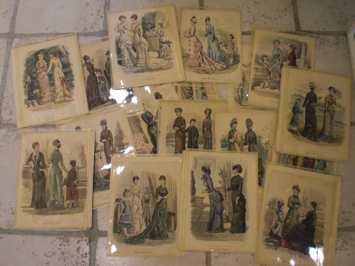 34 uindrammede håndkolorerede modetryk fra Sylvia's Home Journal publiseret i London 1877 - 1895. Mål: 21 x 28,5 cm. Sælges enkeltvis for 50 kr. pr stk