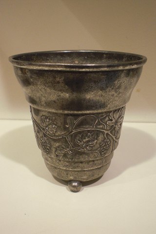 To engelske pint bægre I tin - ustemplede - med punslede numre henholdsvis 5 og 11. Højde: 12 cm. - diameter foroven: 9 cm.