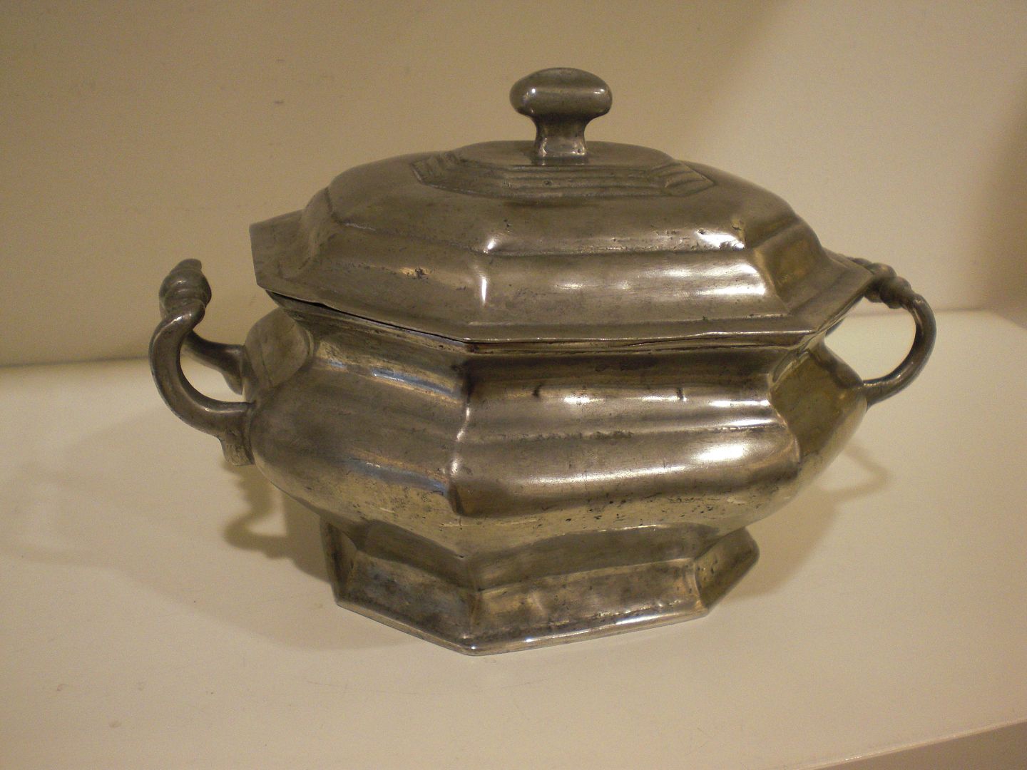Lille tin terrin med låg fra Ornato Portugal stemplet Étain Fin 98% SN. Ca. 1900. Højde med låg: