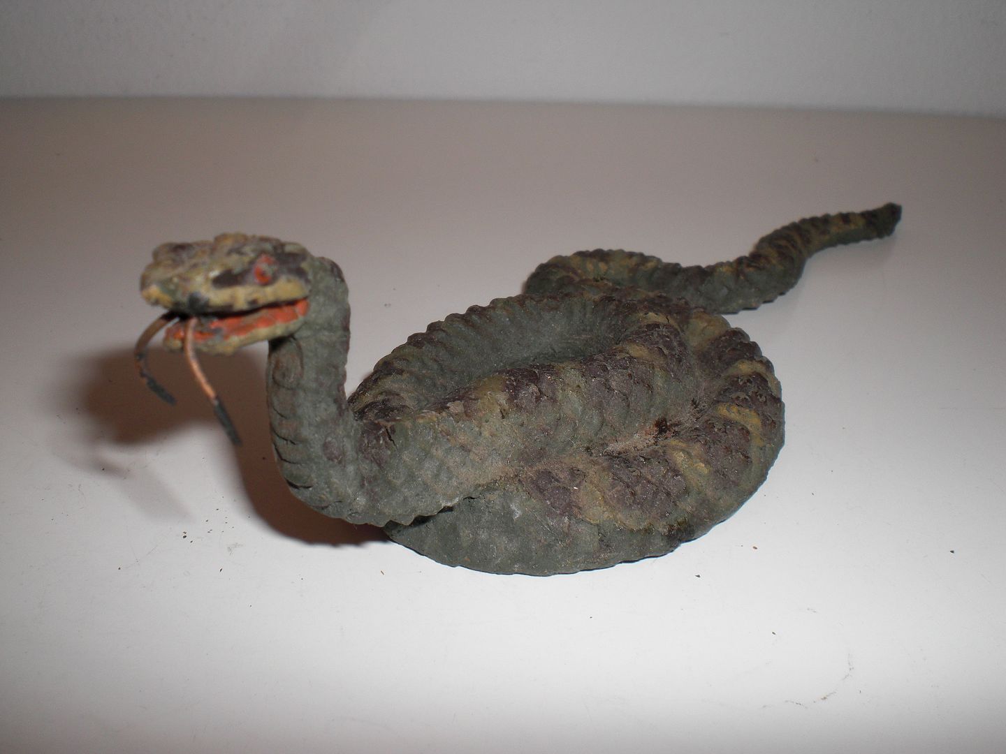 Klapperslange i Lineol, Tyskland - ca. 1940. Højde: 4,2 cm. - længde: 16 cm. Næsten perfekt stand.