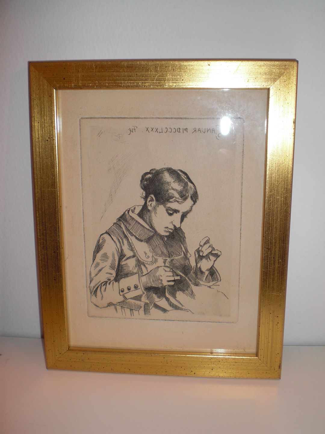 Indrammet radering af sypige af FRT? fra 1880, Lysmål: 9 x 12 cm.