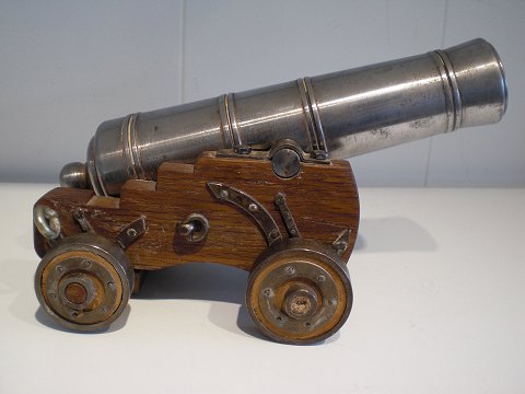 Lille håndbygget og bemalet model af sejlbåd Længde: 21 cm.- højde med stander: 34cm. I pæn stand.