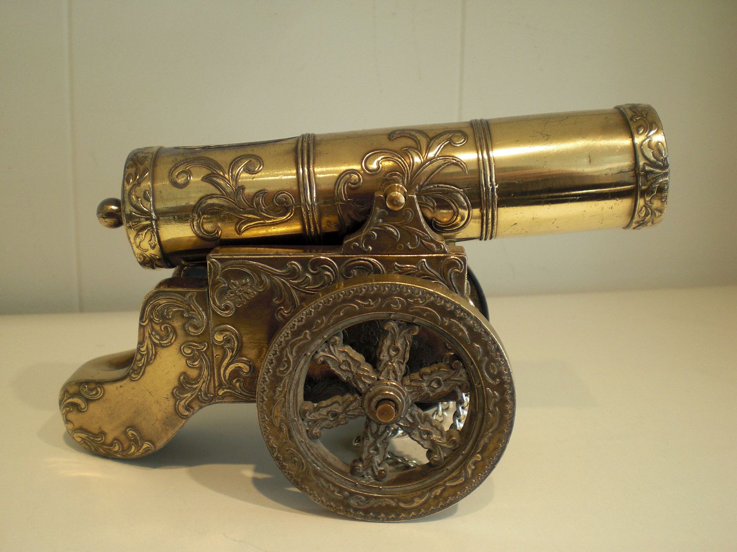 Bordkanon i ornamenteret forgyldt metal.