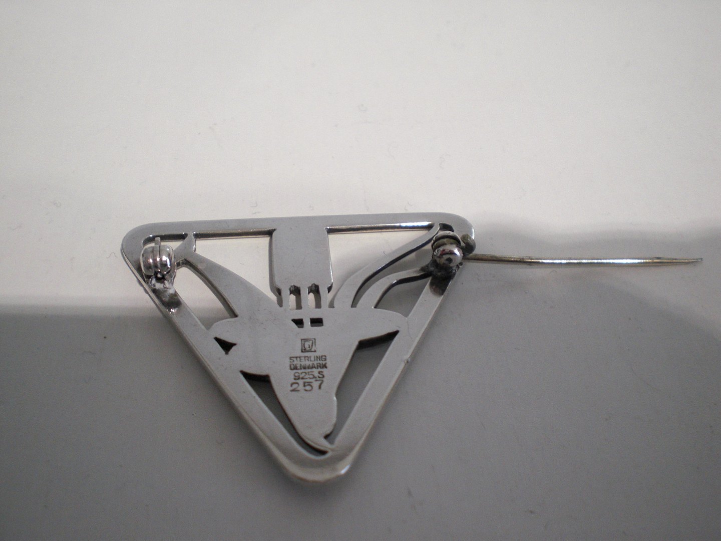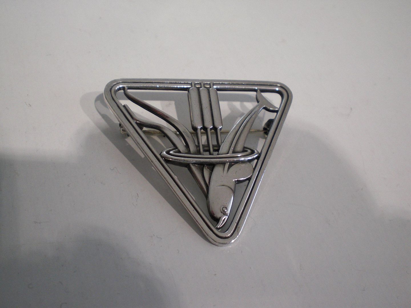 Georg Jensen sølvsmedie (1909 - ) trekantet Art Deco delfinbroche i sterling sølv - dessin 257 designet af Arno Malinovski (1899 - 1976). Stempel 1933 - 1944. I fin stand med tidstypisk slid.