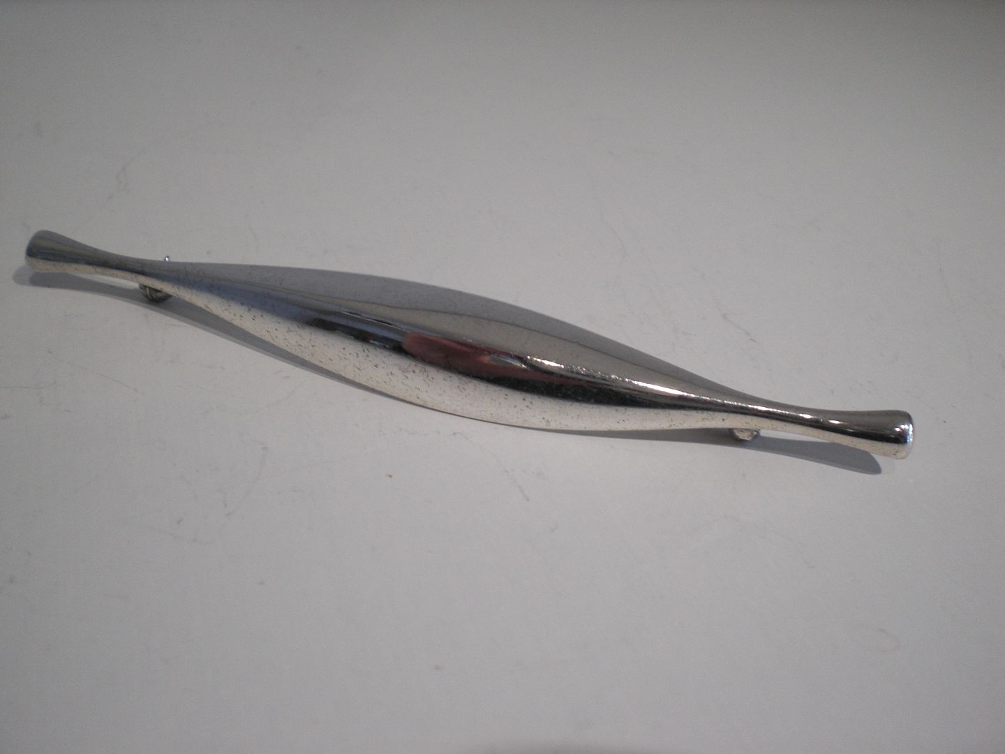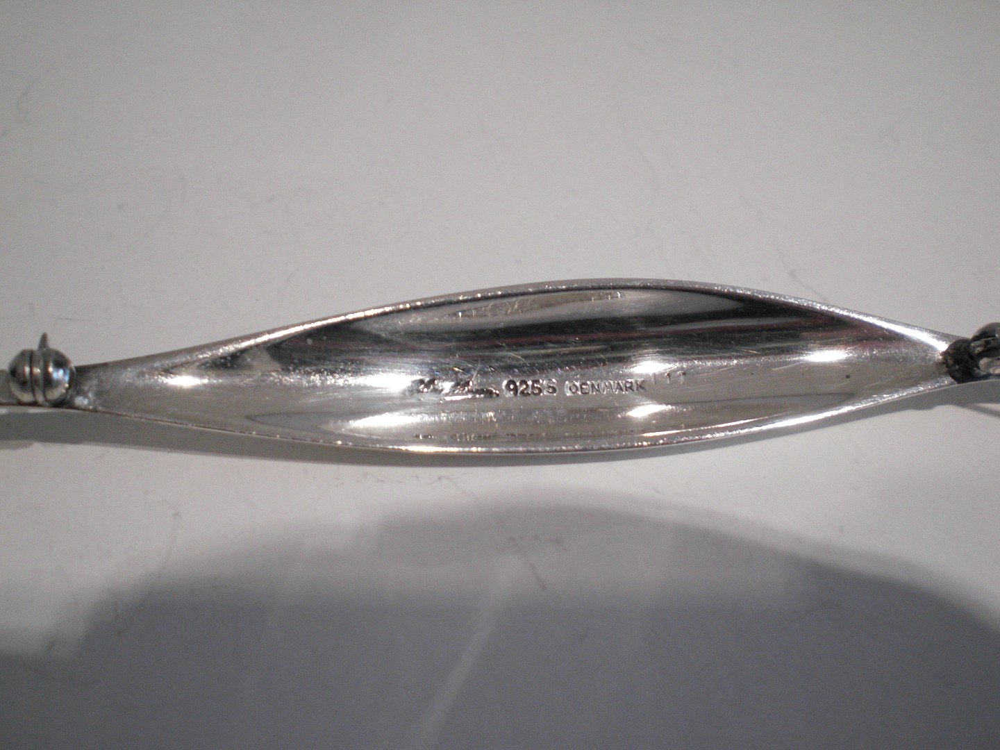 Hans Hansen (1884 - 1982) broche i sterling sølv. Længde: 10,5 cm. Bredde: 1,4 cm. Vægt: 18,6 gram. Ca. 1950.