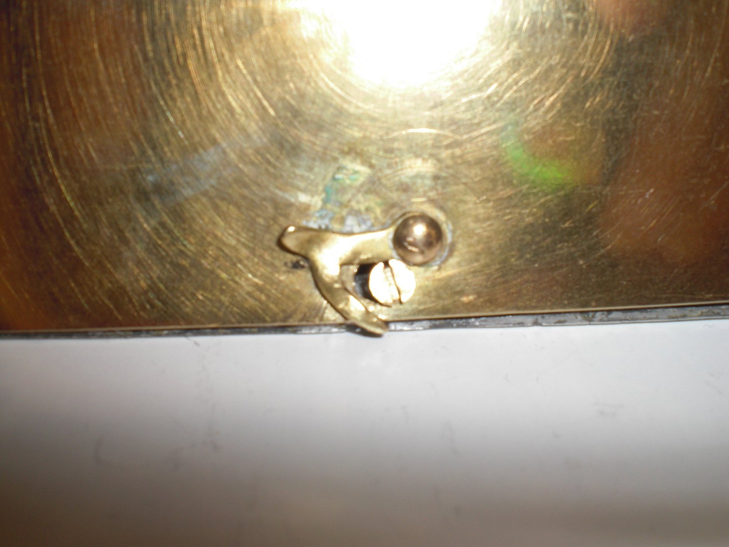 Glat, vandret, Mogens Ballins Eftf, tinramme med messingbagplade og stander. Stemplet HB, Danmark i oval Efter 1919. Ikke i Vejenbogen. I fin stand, med let slid, nyere skrue indsat - vendt tidligt fra lodret til vandret stander. Ydre mål: 15,2,6 x 11,5 cm.