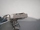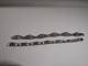 Til venstre: Armbånd udført af O.V.L - dansk sølvsmed ca. 1945. Vægt: 10,1 gram. Længde: 18,9 cm - bredde: 1,1 cm. Pris: 500 kr.
