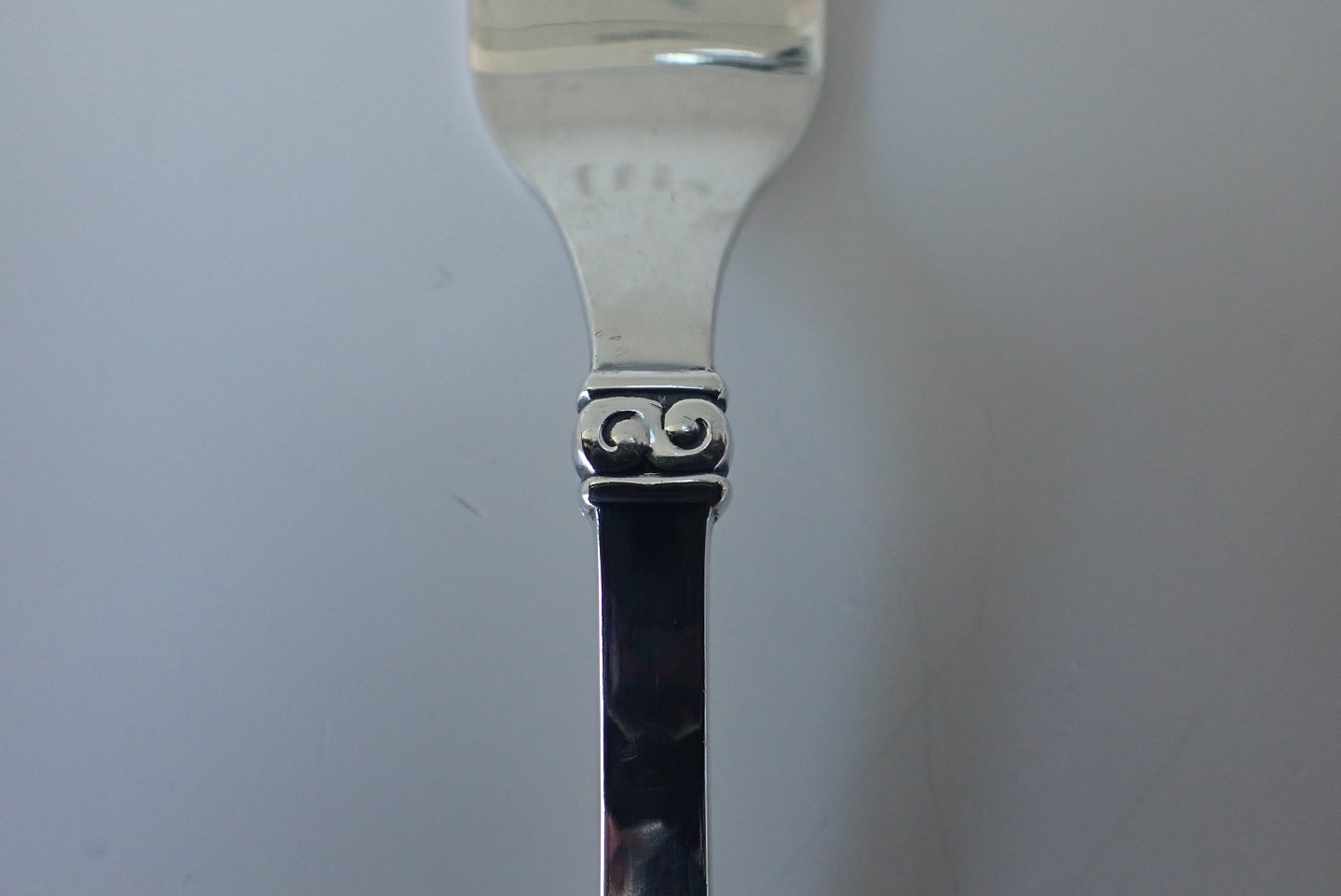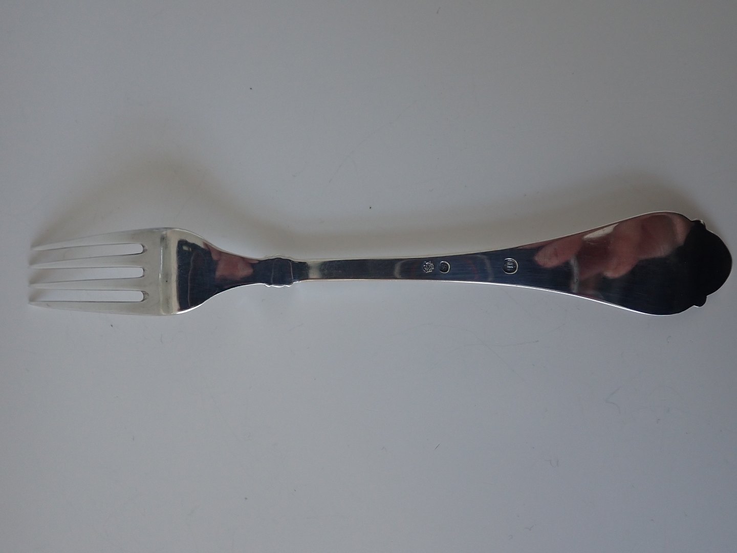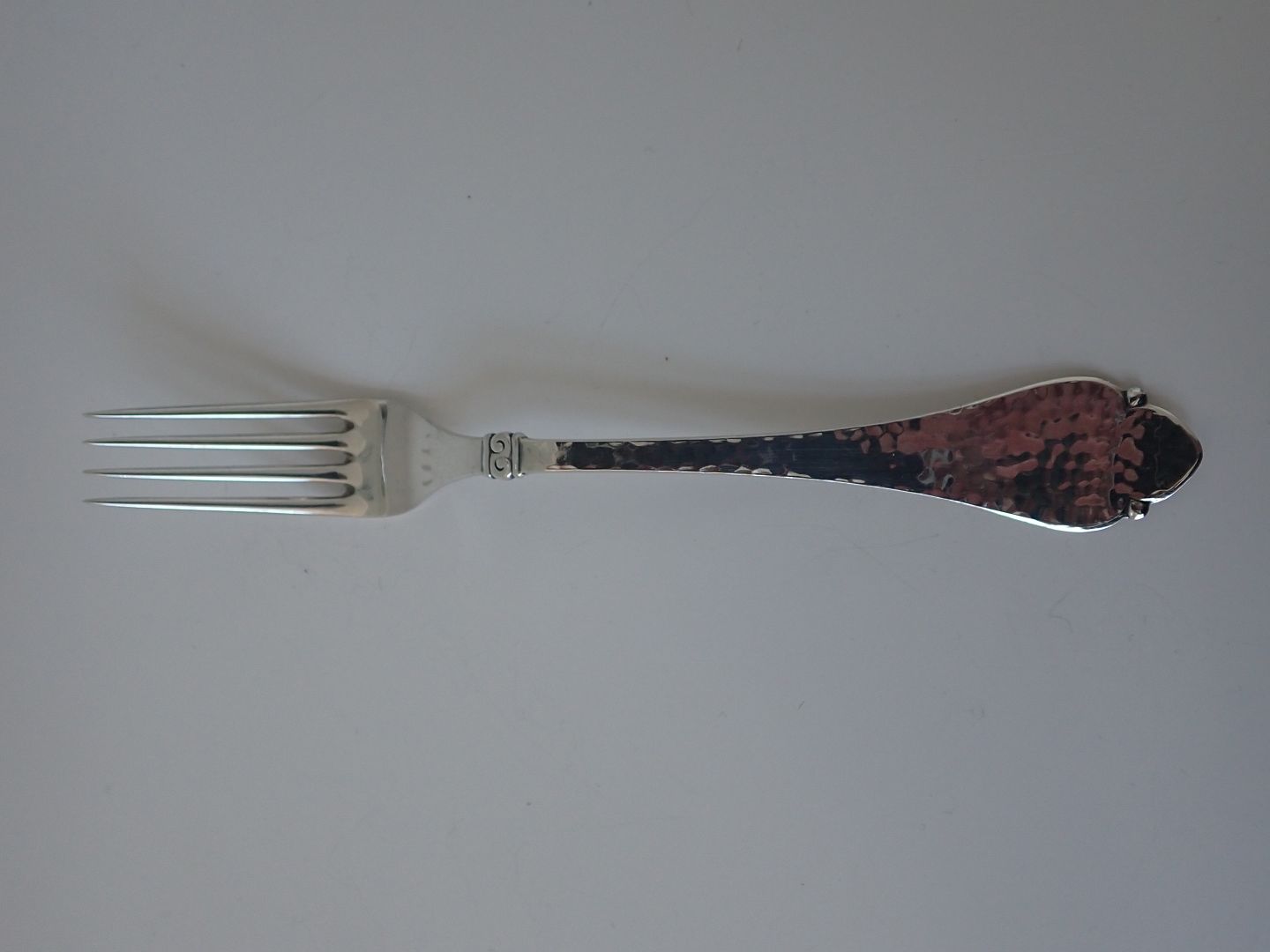 Horsens Sølv - hammerslået barne-/frokostgaffel i mønstret Bernstorff 1939. 3 tårne. Længde: 17 cm. Vægt: 25,2 gram. I fin stand uden gravering.