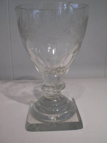 2 tyske helfacetterede vandglas - et med emaljebemaling og et uden.