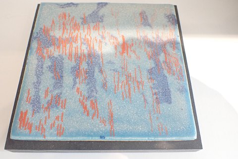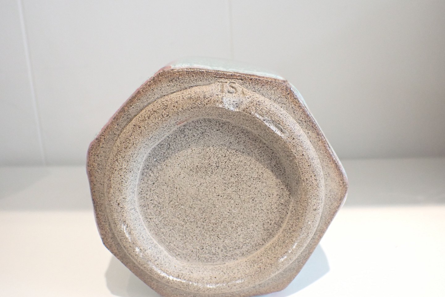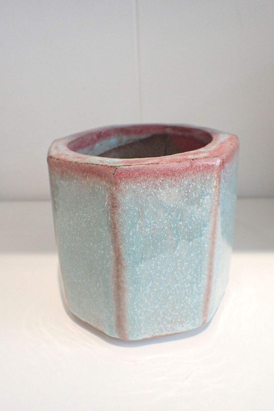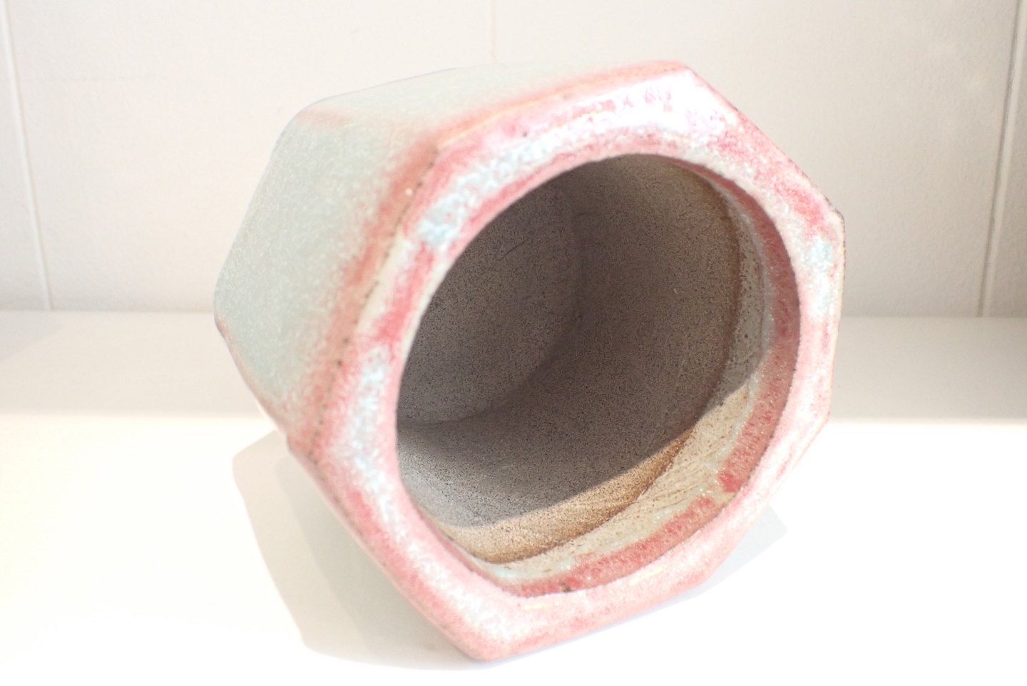 Tine Secher, Anneberg - ny urtepotte i stentøj med dobbeltglasur rød/grøn. Unika. Højde:10,2 cm. Diameter: 10 cm.