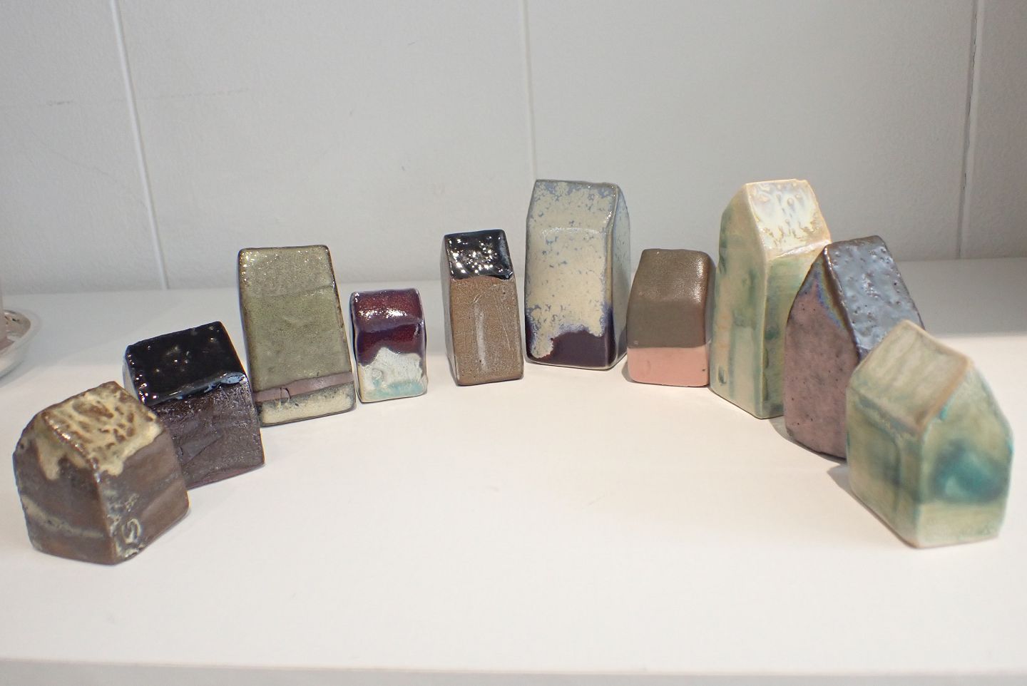 Christina Meldgaard, Anneberg - 10 nye, små glaserede stentøjshuse med mange forskellige glasurer. Højder: 3,8 - 7 cm. Sælges individuelt. 3 tilbage.