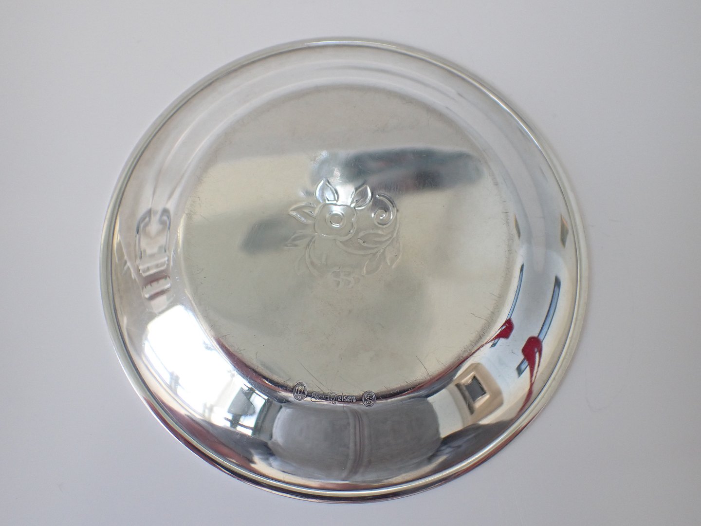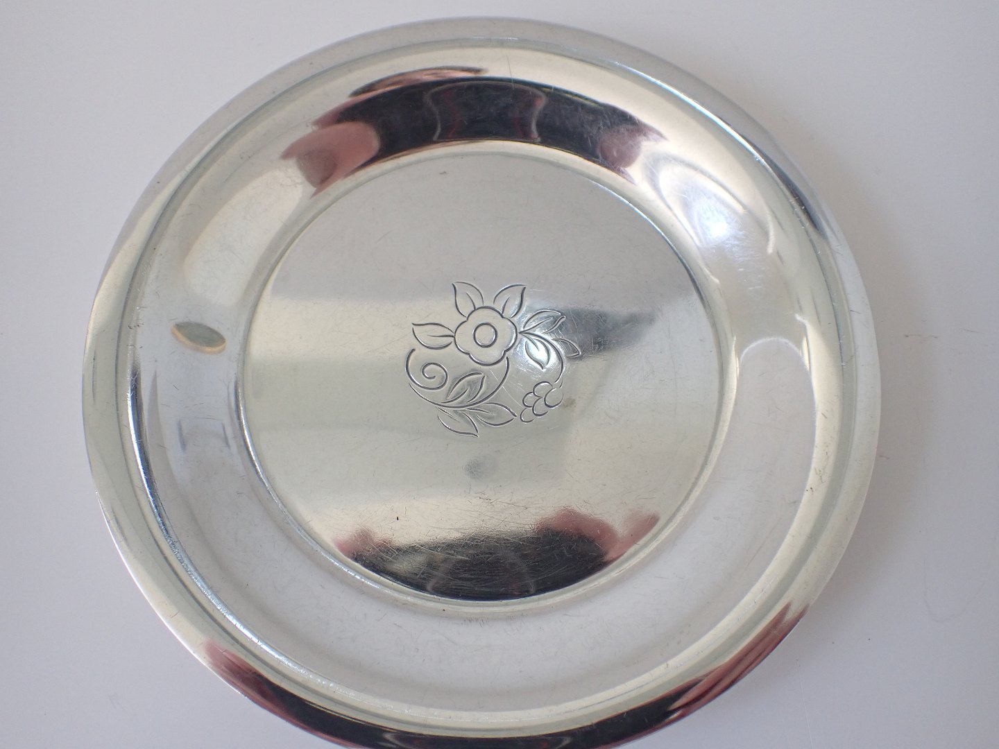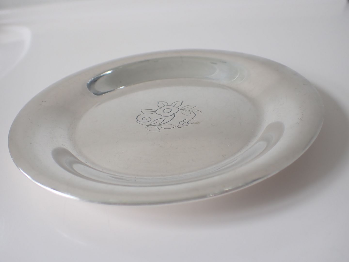 Evald Nielsen (1879 - 1958) - Flaskebakke i tretårnet sølv med lille graveret blomsterdekoration. 1935. Stemplet Evald Nielsen, 3 tårne og guardein J. Siggaard. Diameter: 14,2 cm. Vægt: 107 gram. I pæn stand med let brugsslid.