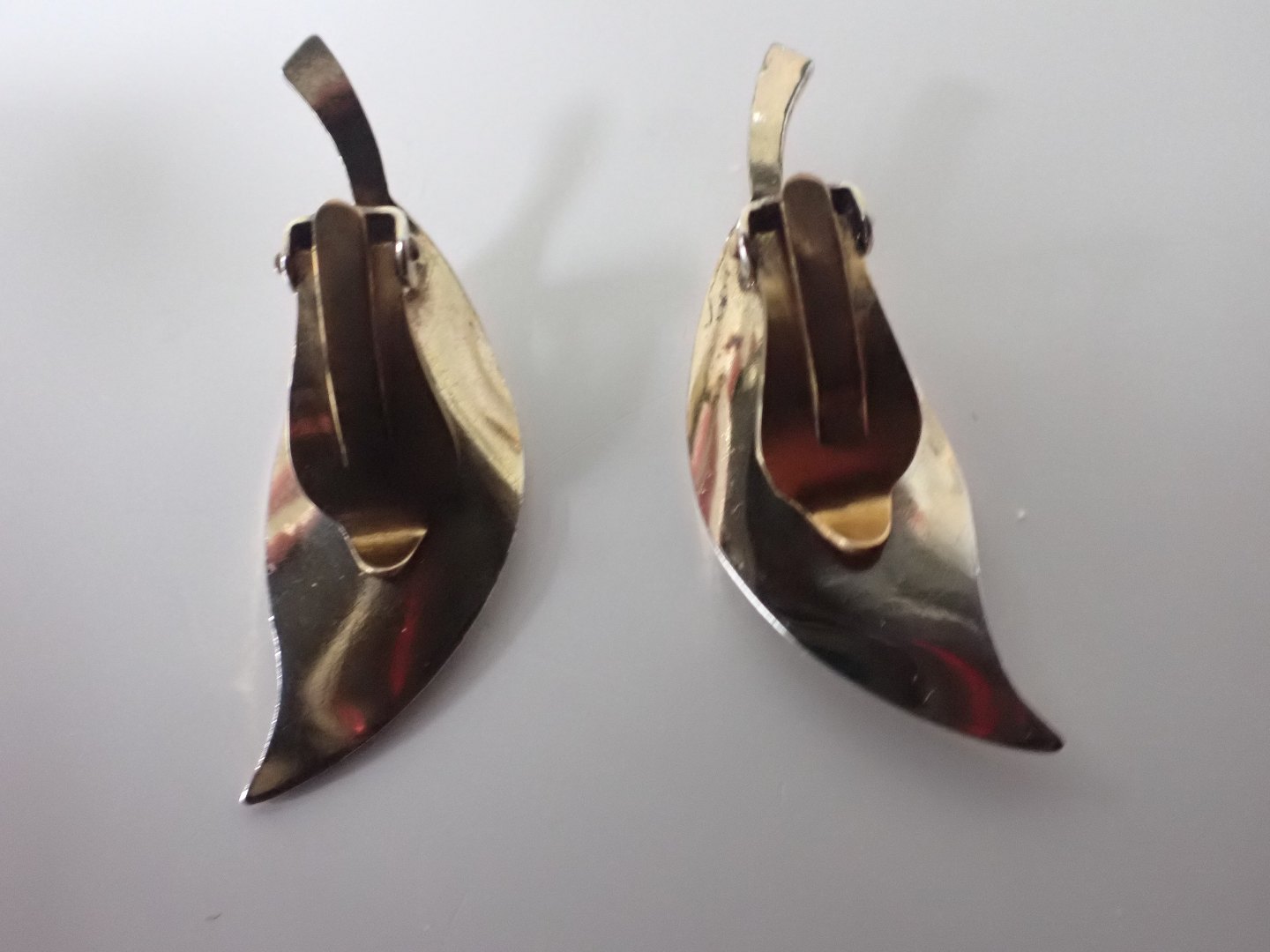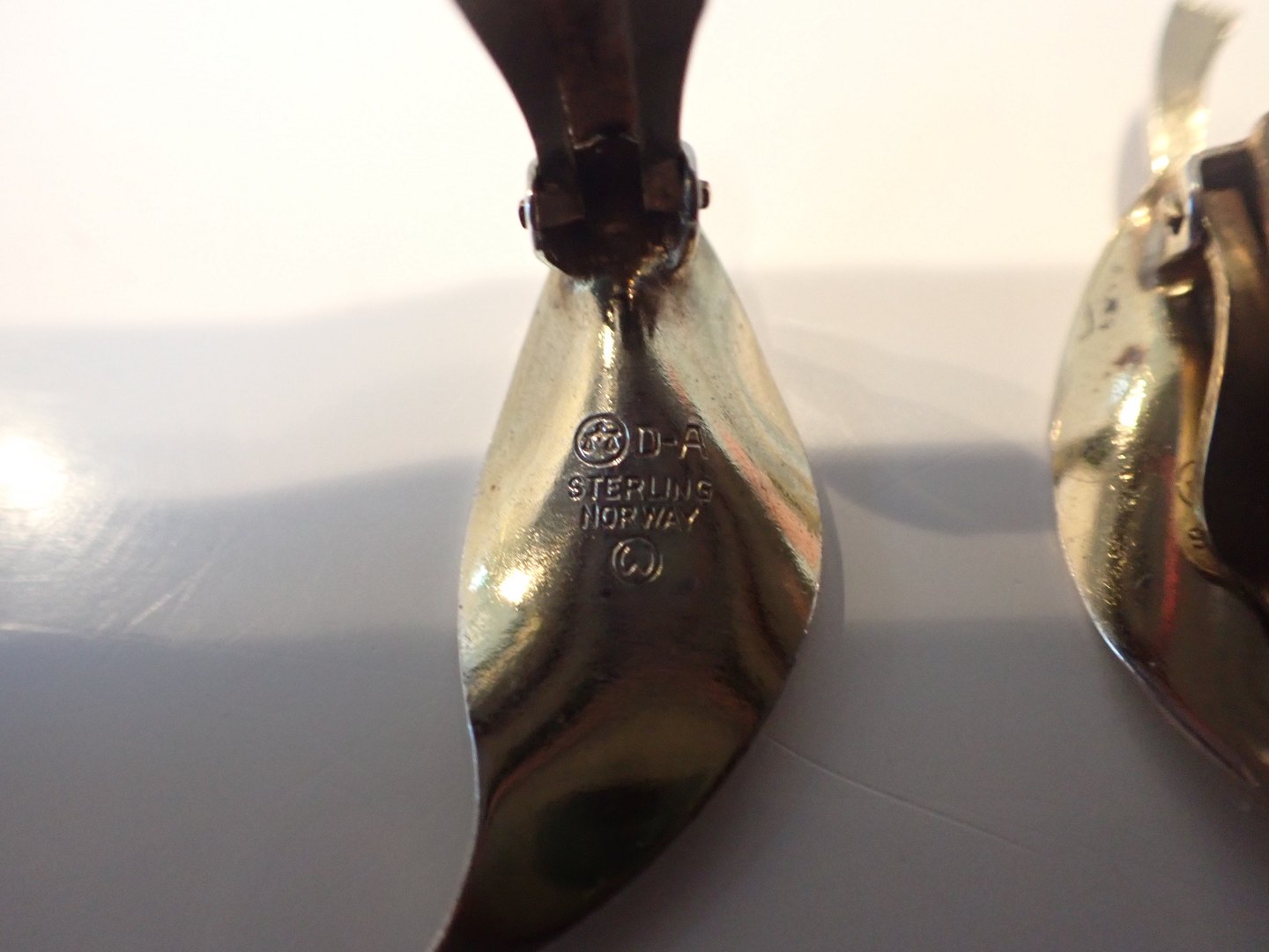 David Andersen - forgyldte sterling sølv øreklips med hvid emalje.