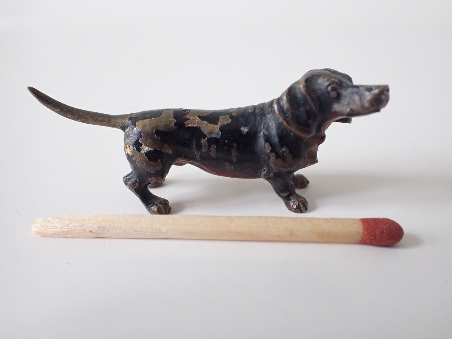 Wiener bronze - miniature koldmalet gravhund. Stjålet ved simpelt tyveri.