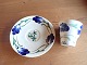 Aluminia Sværdlilie/Blå Cenerarier fajance kaffekop 187/182, lille kop med underkop. Designer: Harald Slott-Møller 1903. Mål: Kop foroven: 6,5 cm., højde: 6,2., diameter underkop:13,3 cm. I pæn stand i forhold til alde med lette kakkeleringer..