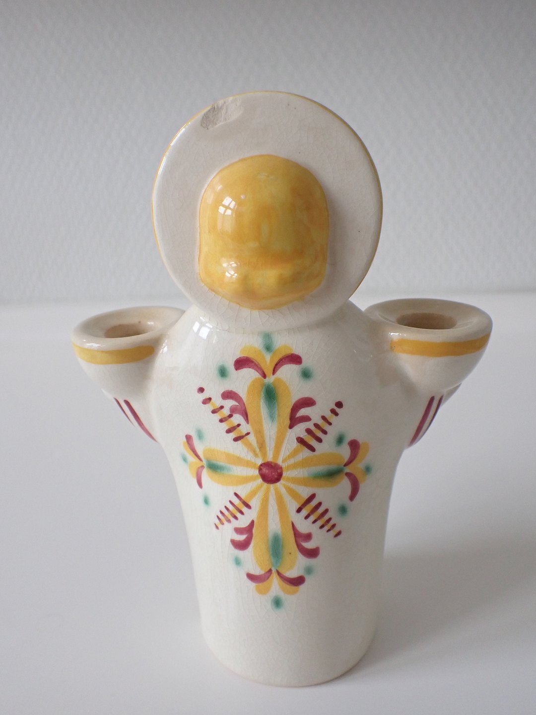 Aluminia juleprinsess til lys -design nr. 2350 designet af Nils Thorsen i 1944.Stempel ca. 1945 - fin stand, meget let krakelering. Højde: 13 cm. I pæn stand med chip på bagside af glorie.