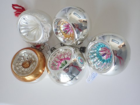 6 glasornamenter, figurer - en russisk agurk, en russisk ræv, et tysk hus, en russisk kat, en russisk snurretop (solgt) og en tysk pengepose. Alle 1930 - 194 og i pæn stand i forhold til alder. Priser: fra 150 - 225 kr.