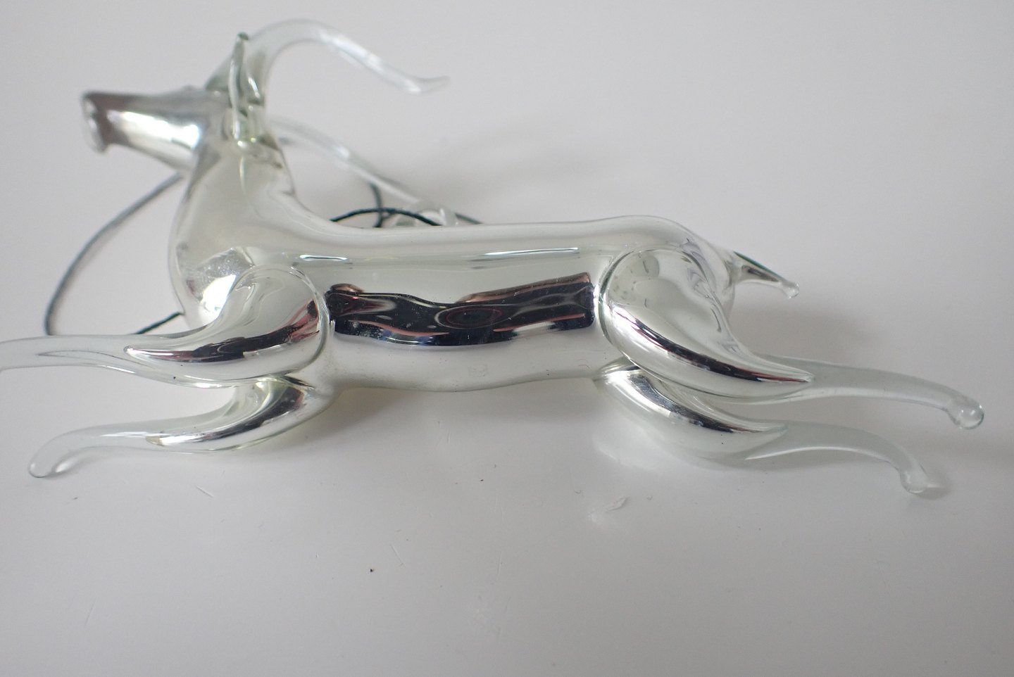 Glasjulepynt - sjælden glashjort, sølvfarvet. Med glasophæng. Leipzig tidlig 1900-tal. Højde. 5,2 cm. Længde: 9 cm. Hel og fin stand uden afslag.